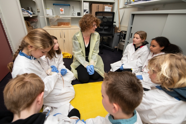 Leerlingen van basisschool de Laarakker krijgen een kijkje achter de schermen in het dierenlab van dr. med. Lisa Genzel. (Foto: Jimmy Israël)